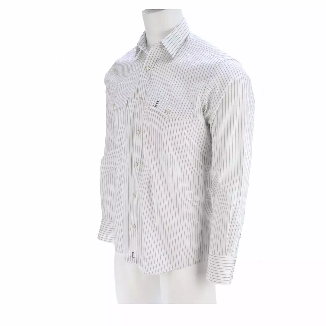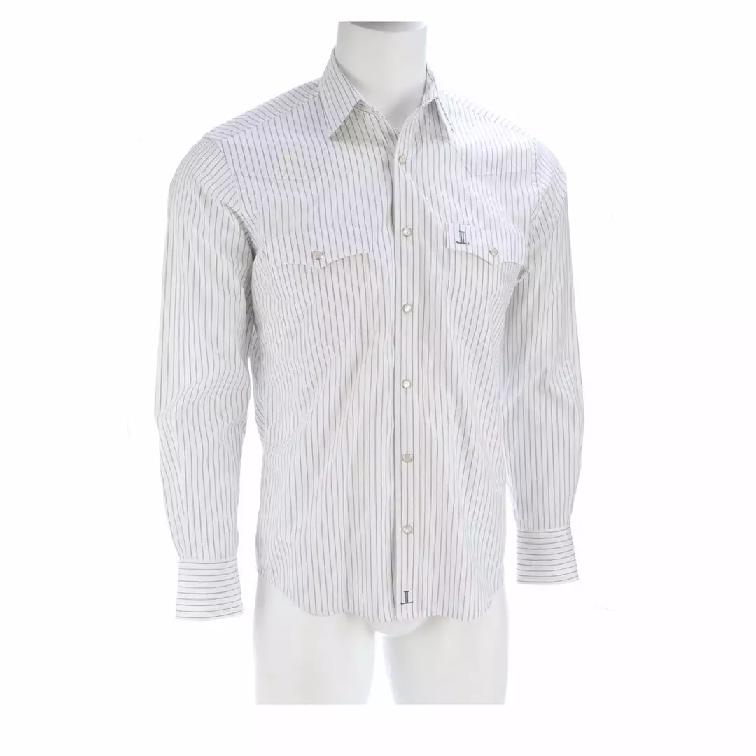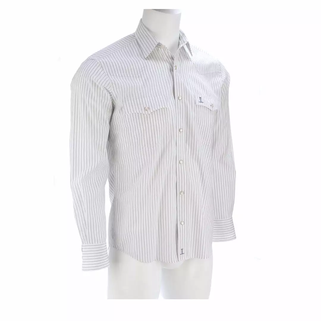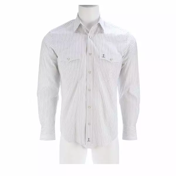 Lucchese originated, this refined cotton shirt features a hidden button-down collar, open single-patch pocket with pen slot and a cowboy yoke in back for understated Western flair. A subtle, embroidered mirrored-L emblem on the left pocket and lower placket adds interest. Classic cowboy fit. Details: Quarter round barrel cuff with adjustable buttons Single button sleeve placket Lucchese engraved buttons Shirttail hem 100% cotton for comfort and breathability Machine washable Imported