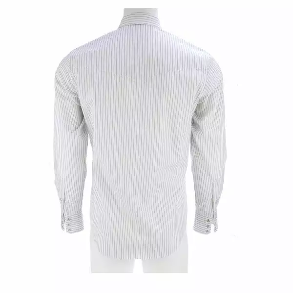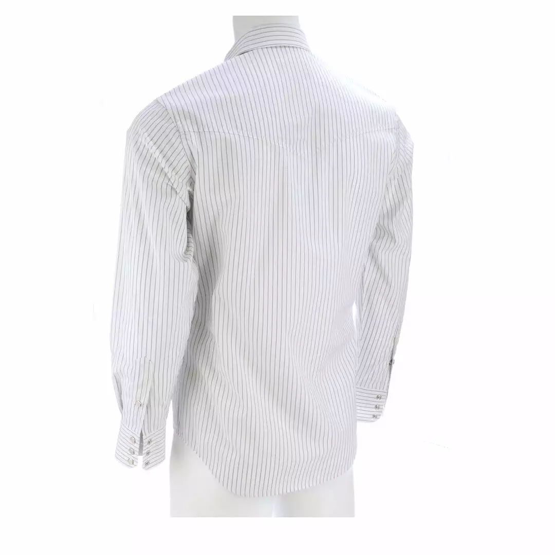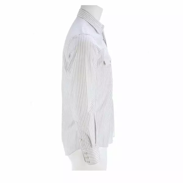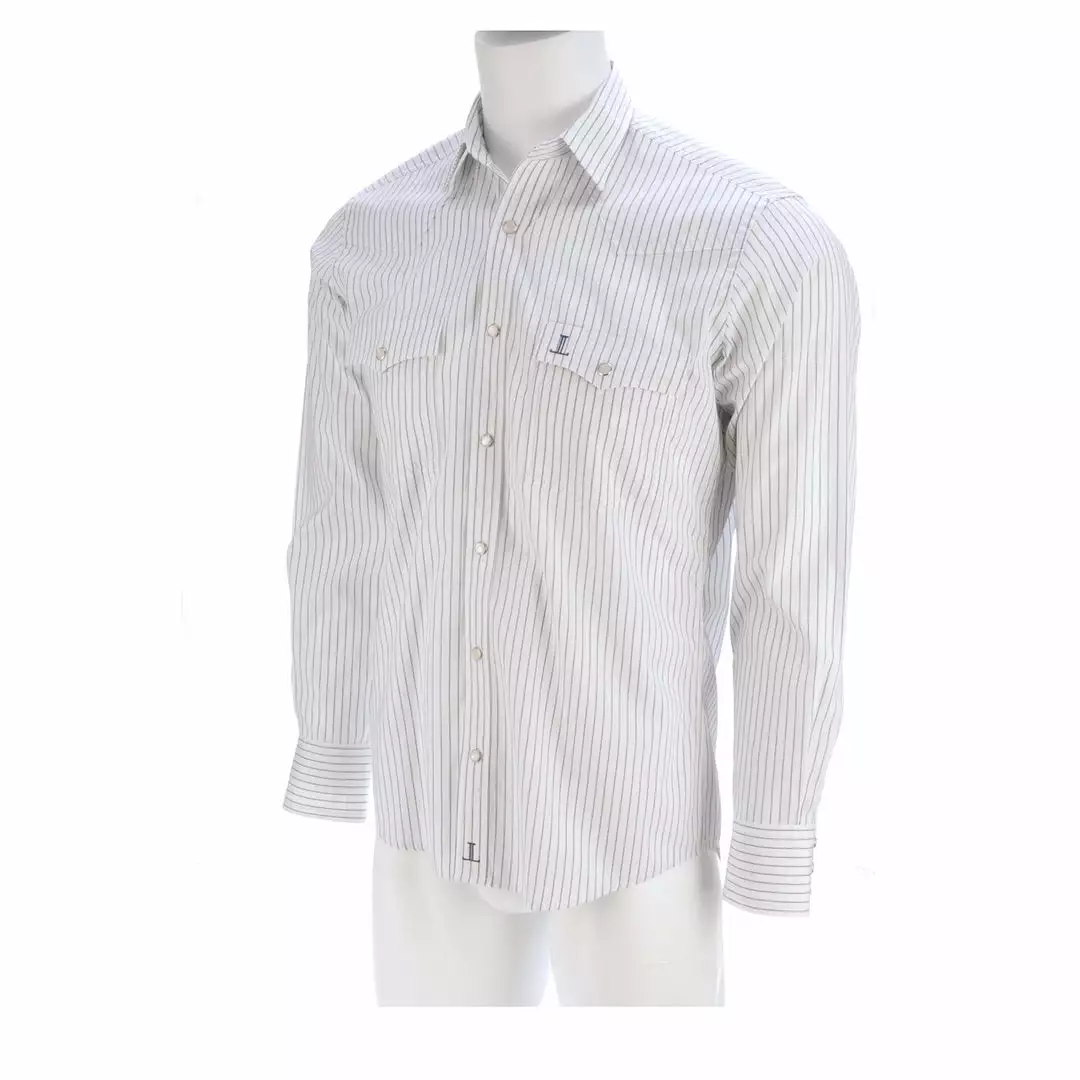 Lucchese originated, this refined cotton shirt features a hidden button-down collar, open single-patch pocket with pen slot and a cowboy yoke in back for understated Western flair. A subtle, embroidered mirrored-L emblem on the left pocket and lower placket adds interest. Classic cowboy fit. Details: Quarter round barrel cuff with adjustable buttons Single button sleeve placket Lucchese engraved buttons Shirttail hem 100% cotton for comfort and breathability Machine washable Imported