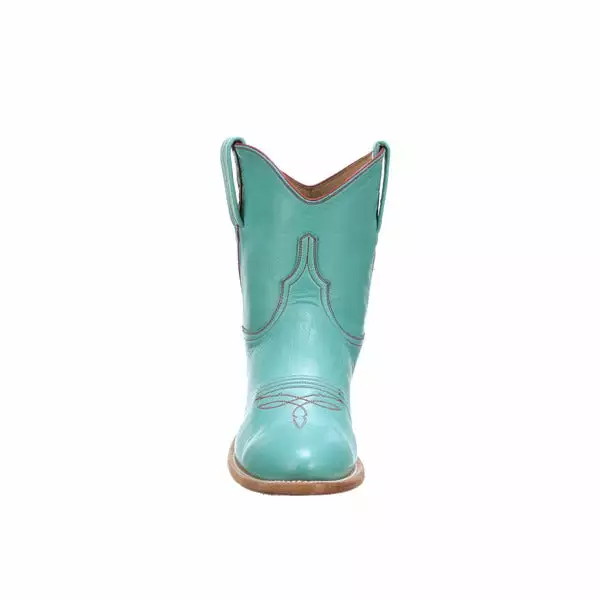 Gaby is a 7″ western shortie. This simple pull-on boot features a tonal, mirrored-L logo on the back, a Star toe medallion on the vamp and a rounded toe for a kick of style.