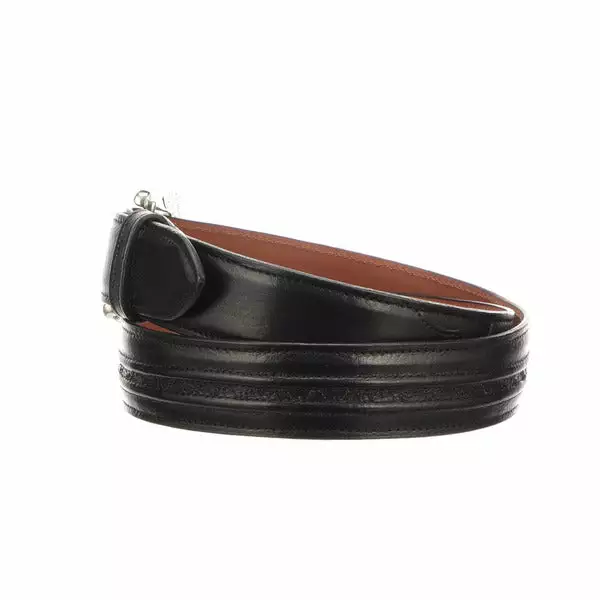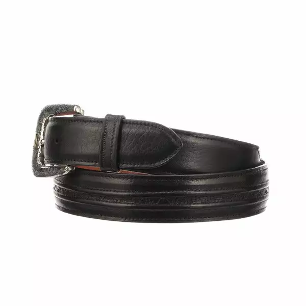 Lucchese menβs belt made with buffalo leather. Lucchese craftsmen use a unique polish method that create different hues and add texture to the leather, giving it a vintage look. Made with buffalo leather, this belt is thick and has good durability. Its Southwest buckle and hobby stitching add style and versatility to this men’s belt. Handmade in Texas. 1.5″ wide Hobby stitching Removable buckle