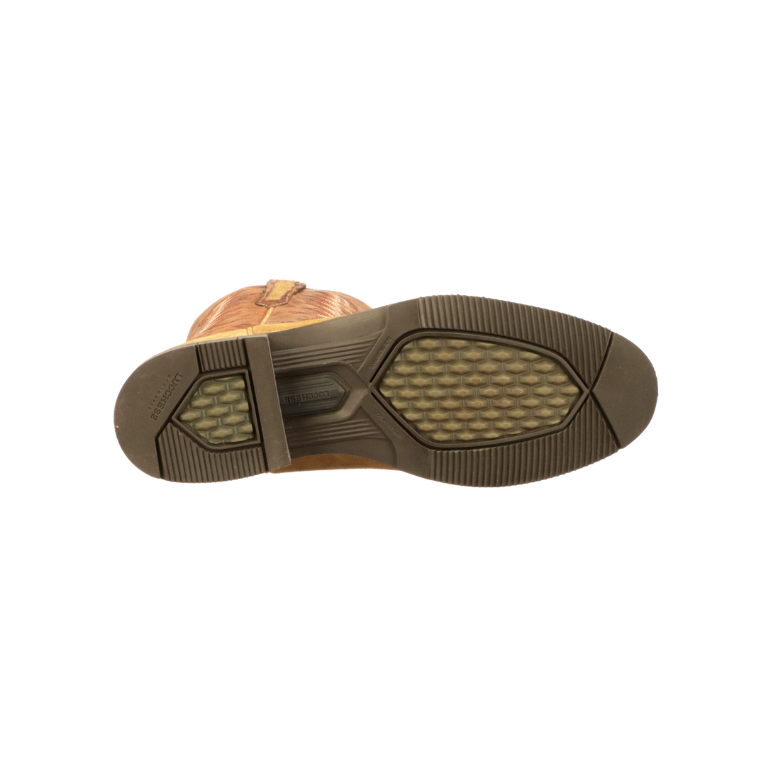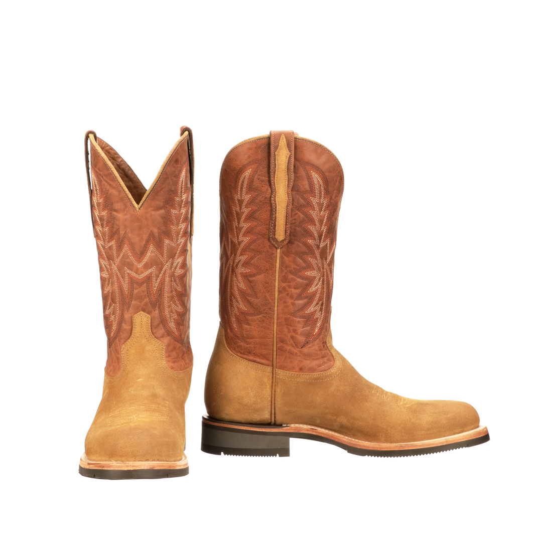 Rusty is a roper style barn boot in the Lucchese Performance Collection featuring grooves that release mud and muck, perfect for a long day on the ranch.