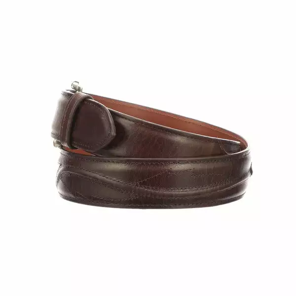 Lucchese men’s belt made with cowhide leather. Lucchese craftsmen use a unique polish method that create different hues and add texture to the leather, giving it a vintage look. The belt features seville stitching and a silver plated buckle with Western details. Handmade in Texas. 1.5″ wide Seville stitching Removable buckle