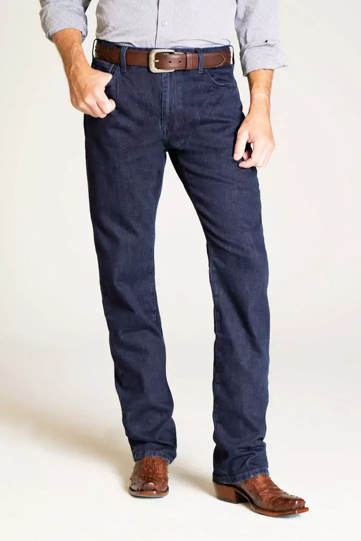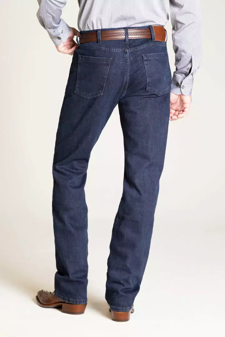 Our classic bootcut jean has a more modern slimmer silhouette that is designed to fall easy over the hips and wear with boots. Performance stretch denim allows for maximum comfort without sacrificing long-lasting durability. Available in both medium and dark rinses. Features: 34″ inseam Performance stretch denim (98% Cotton/2% Elastane) Made with 11 oz. denim 7 belt loops ensure a great fit with any belt Classic 5 pocket construction Proudly made in the U.S.A Machine wash cold with like colors. Tumble dry low or hang dry. Made in the USA