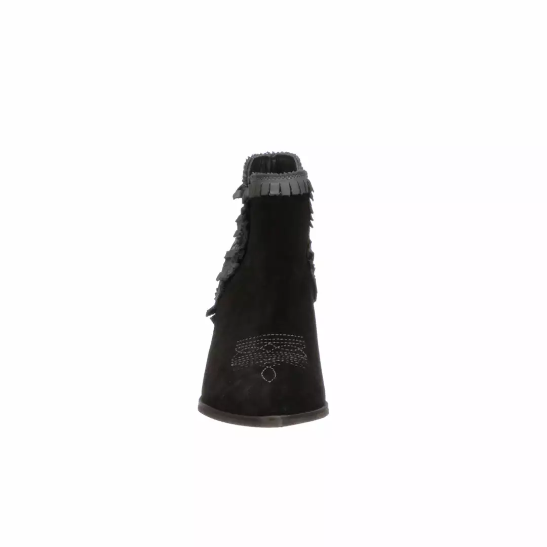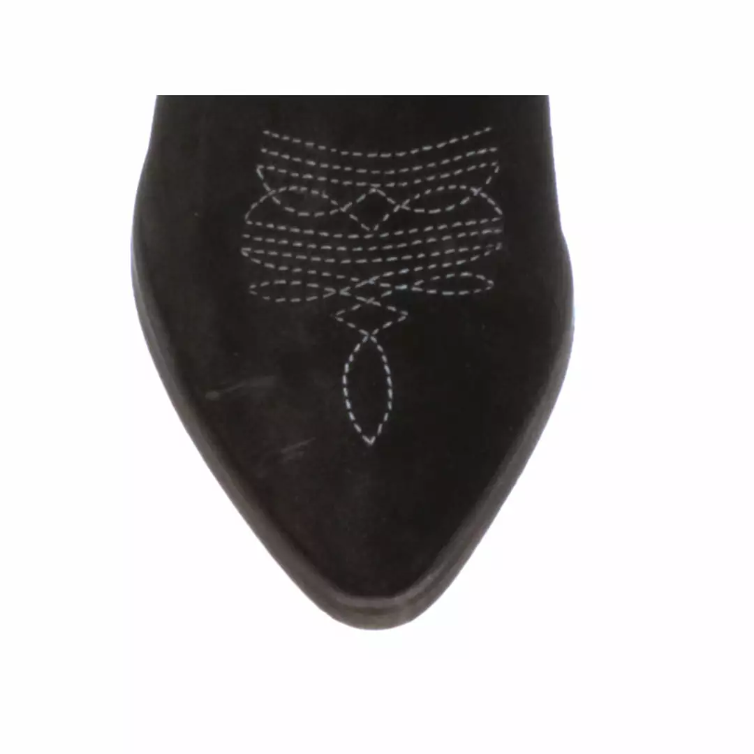 Alma Suede is a modern bootie with western flair.