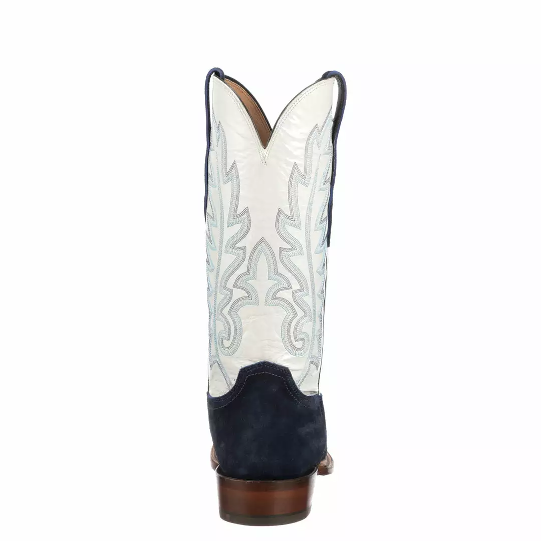 Silo is a modern horseman boot crafted from rich suede. It has a single natural storm welt detail and contrasting quarter panels. Handmade in Texas.