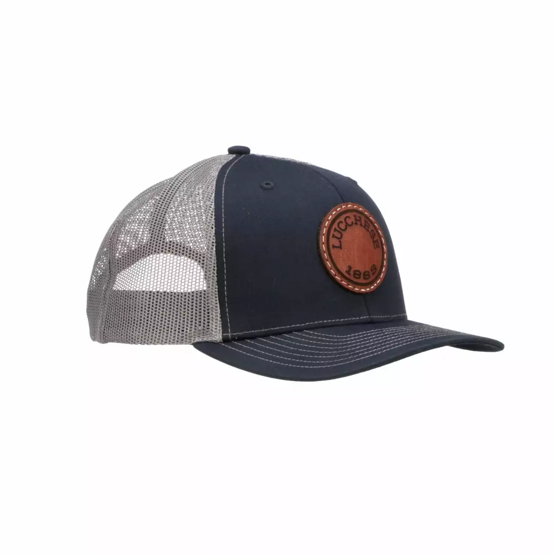 The Lucchese Leather Patch Cap has breathable mesh and an adjustable snap closure. Lucchese Bootmaker logo patch on front. One size fits most.