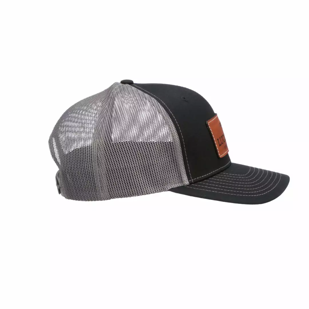 The Lucchese Leather Patch Cap has breathable mesh and an adjustable snap closure. Lucchese Bootmaker logo patch on front. One size fits most.